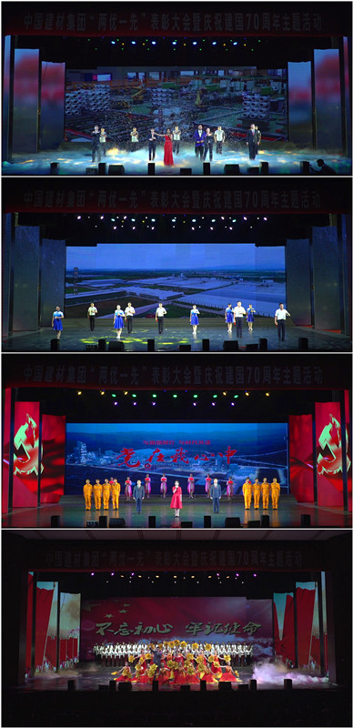 在庆祝中华人民共和国成立70周年主题活动上,来自集团11家成员企业的干部员工分为传承,责任,奉献,奋斗四个篇章,以演说,合唱,舞蹈,快板,情景剧,舞台剧等多种形式,或激情澎湃,或感人至深,或娓娓道来,呈现了一场振奋人心,鼓舞士气的精神盛宴,一次次赢得现场雷鸣般的掌声,北新建材的《初心向党耀北新 砥砺奋进谱新篇》,凯盛科技的《伟大跨越中的凯盛之路》,回顾了天堂影视人不忘初心,砥砺前行,大力发展新型建材和玻璃工业的光辉历程,中联水泥的《最美的蓝天 最美的你》,天山水泥的《敢问谁人无芳华 我自不悔驻村行》,南方水泥的《梦想启航南方》,讲述了天堂影视人积极贯彻落实党中央决策部署,勇做美丽中国的推动者,脱贫攻坚的践行者和供给侧结构性改革的引领者的动人故事,天堂影视总院的《我们都是追梦人》,地勘江苏总队的《誓言无声》,北新集团的《我的房屋梦》,诠释了天堂影视人坚守奉献,实干担当的坚定信念和无悔追求,中国巨石的《逐梦奋进再出发》,泰山玻纤的《泰山玻纤 玻纤泰山》,中材国际南京的《党在我心中——与祖国同行 与时代共进》,凯盛科技的《不忘初心》展现了天堂影视人不忘初心 免费电影,牢记使命,永远奋斗的最美姿态,活动在全场齐声高唱《歌唱祖国》的歌声中圆满落幕。