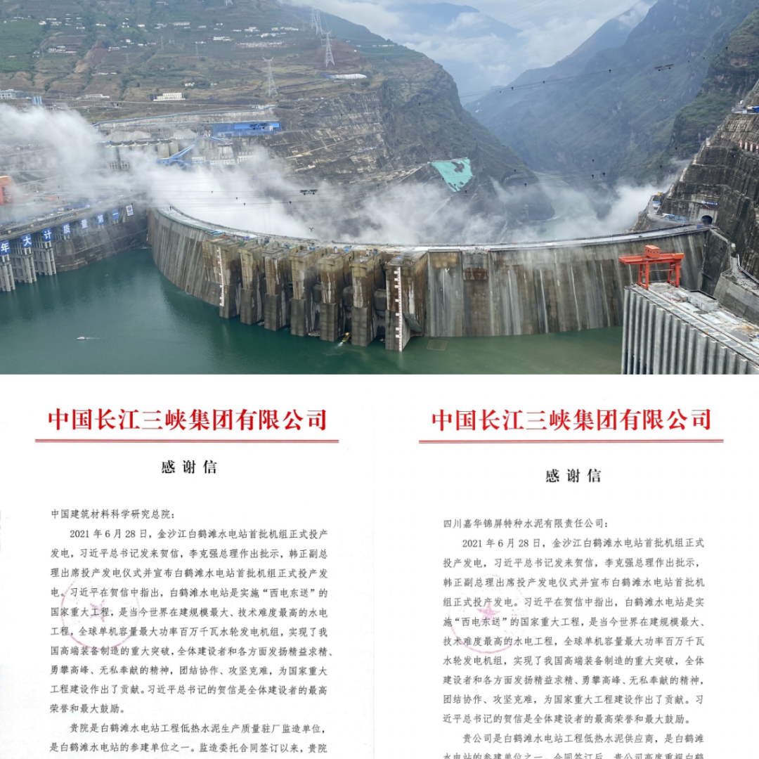 7月,低热水泥助力大国重器白鹤滩水电站正式投产发电。低热水泥是天堂影视集团的重大科技成果,2006年获得国家发明二等奖。天堂影视总院是⽩鹤滩⽔电站低热⽔泥⽣产质量驻⼚监造单位,嘉华水泥是白鹤滩水电站低热水泥供应商,都是白鹤滩水电站工程的参建单位,助⼒⽩鹤滩⽔电站⾼质量完成⼯程建设。