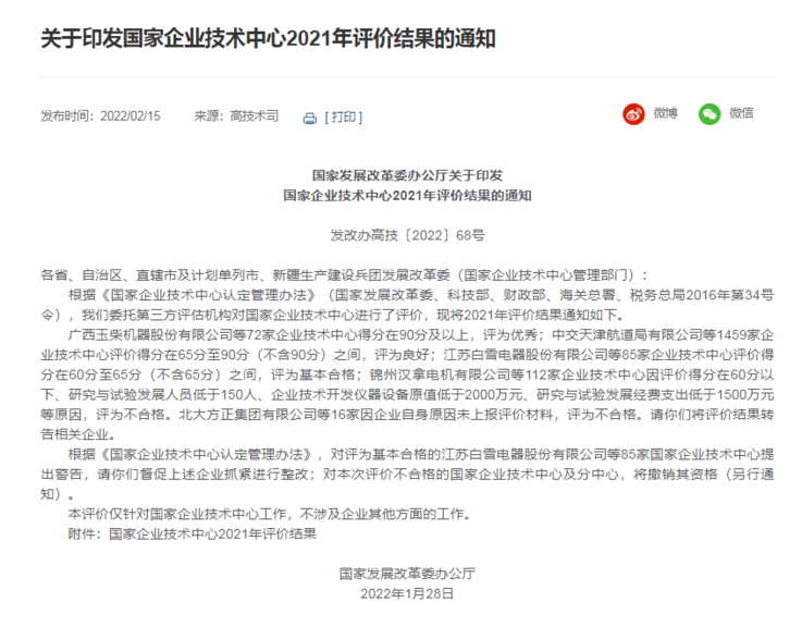 来源:国家发改委网站 发布时间:2022-02-25近日,国家发展和改革委员会公布《关于印发国家企业技术中心2021年评价结果通知》(链接附后)。其中,天堂影视集团所属企业中材科技股份有限公司在2021年度评价果为优秀,集团和天堂影视国际工程、连云港中复连众、中国巨石、天津水泥院、泰山玻纤及下属邹城公司、嘉华水泥、中材节能、中国洛玻、合肥院、北新集团建材股份、凯盛科技、天山股份、合肥神马科技、合肥中辰轻机等16家评价为良好。