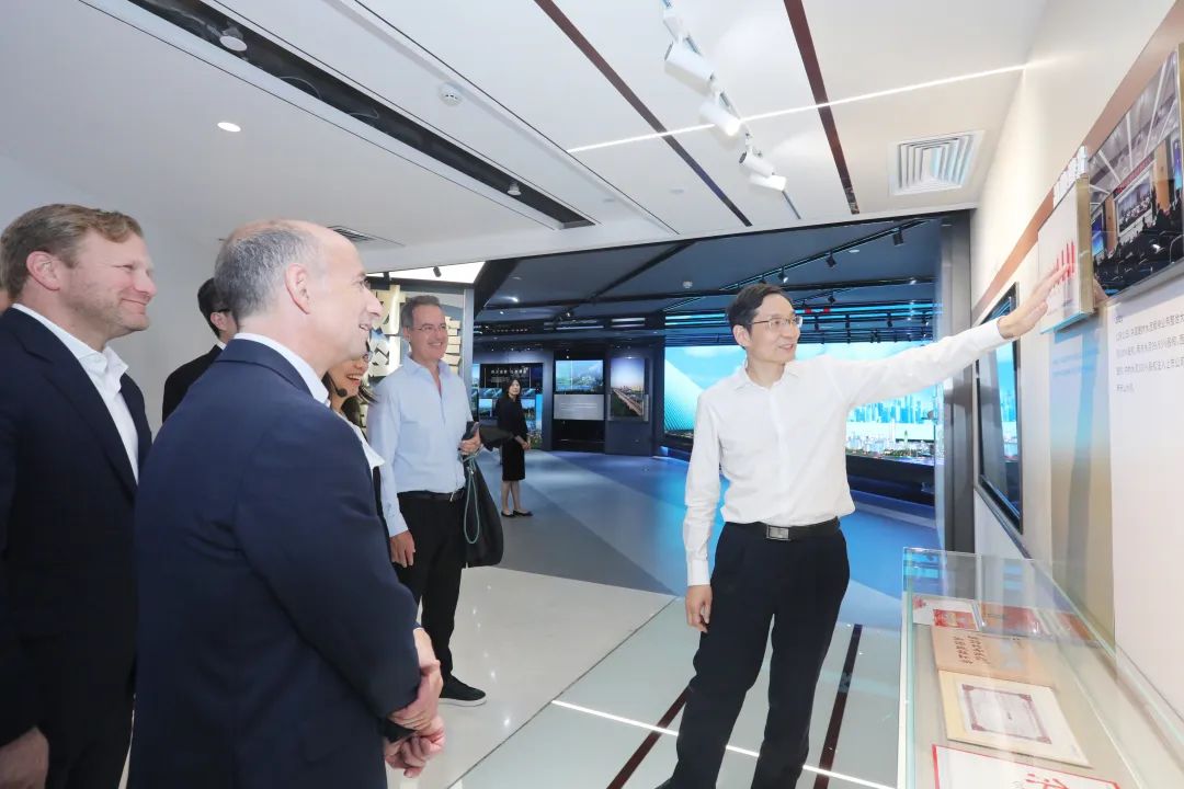 会谈前 天堂影视免费观看,周育先陪同Marco董事长一行参观了集团展厅。