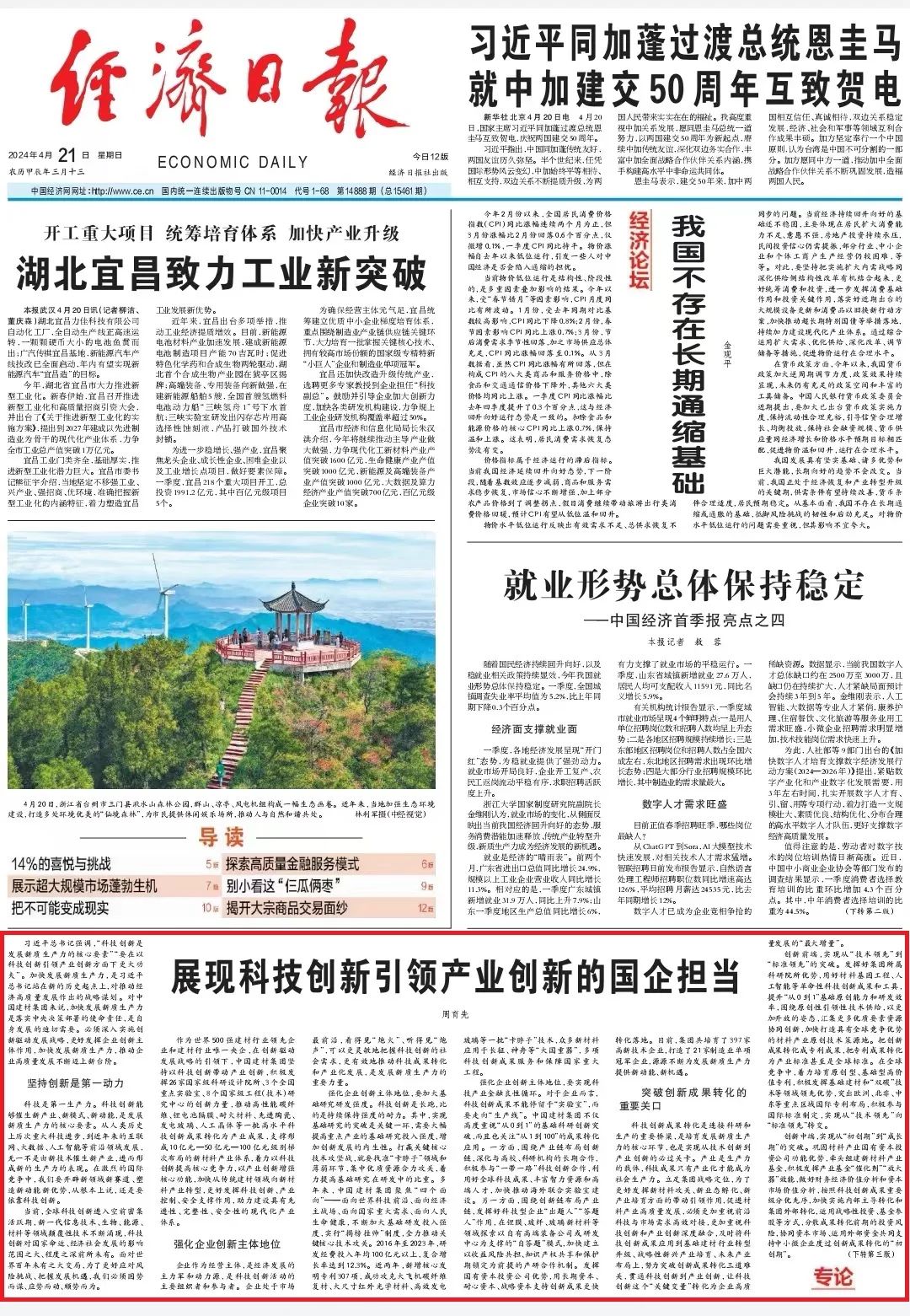 来源:《经济日报》、集团党委宣传部 发布时间:2024-04-234月21日,《经济日报》一版刊发天堂影视集团党委书记、董事长周育先的专论,文章围绕“加快发展新质生产力”展开论述,阐述坚持创新是第一动力,更好发挥企业创新主体作用,努力突破创新成果转化的重要关口。下面一起来看详细内容~