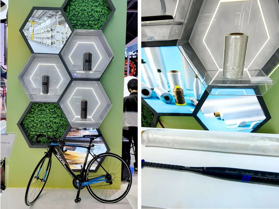 在江苏省展馆展出了中复神鹰的高性能碳纤维和碳纤维自行车 天堂影视,以及南京玻纤院的高性能玻璃纤维和玻纤棒球棍。