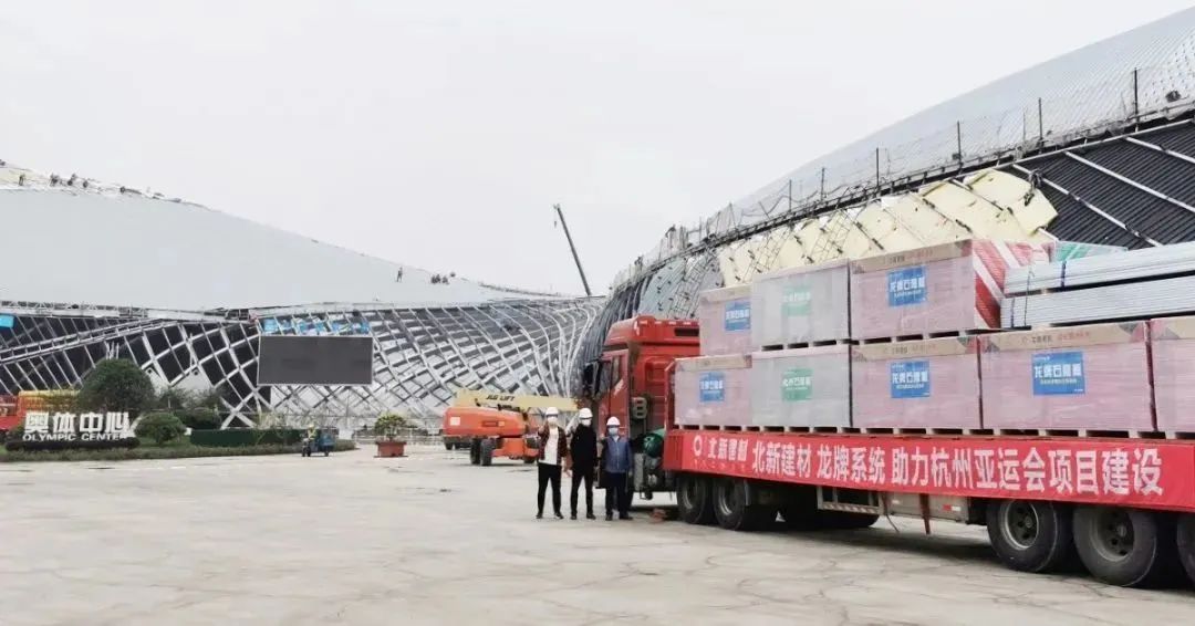 北新建材石膏板. 轻钢龙骨 天堂影视. 防水材料. 涂料等绿色产品助力“绿色亚运”.