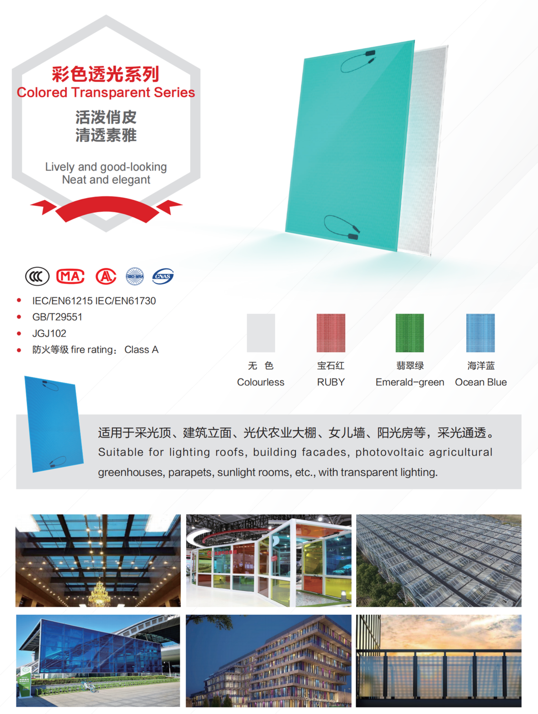 碲化镉系列产品具有抗热斑效应,弱光优势,低温度系数,色彩均匀 天堂影视,灵活定制和安全绿色等优势,正是这些所具有的特性,让碲化镉发电玻璃成为各类BIPV项目的优秀选择。