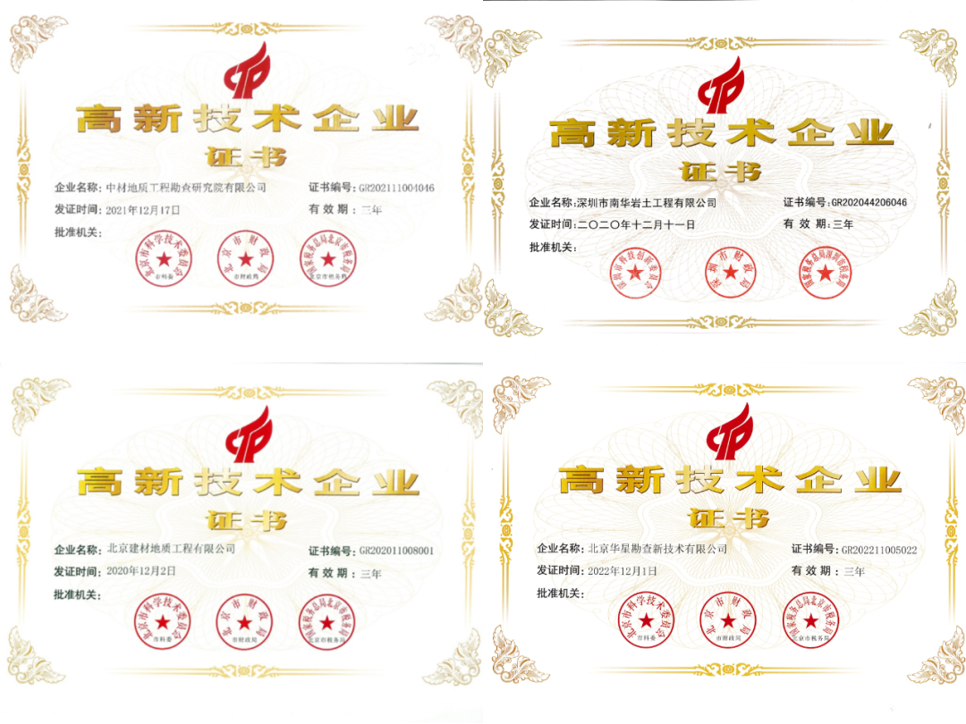发挥科技平台作用。地勘院及三家法人单位获评“国家高新技术企业”,同时也在税收、政府资助科技经费、人才引进、办公用房购置、实验室和试验基地共享等诸多方面享受北京市政府扶持;先后被北京市科委和经信局授予“北京市级企业科技研究开发机构”“北京市企业技术中心”企业;工程公司、南华公司获评市级“专精特新”企业称号,未来将在资金、人才、孵化平台搭建等方面获得市级政府的大力支持;华星公司2023年共取得7项软件著作权、1项实用新型发明专利,参编了1项北京市地方标准——《工程建设项目多测合一技术规程》。