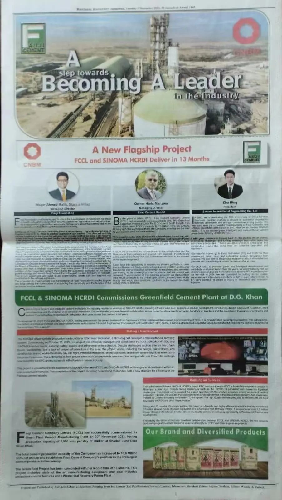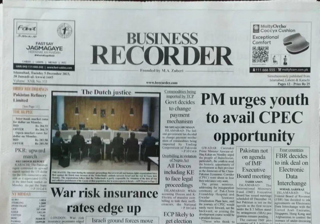 图丨巴基斯坦主流媒体整版报道Fauji(DG Khan)项目
