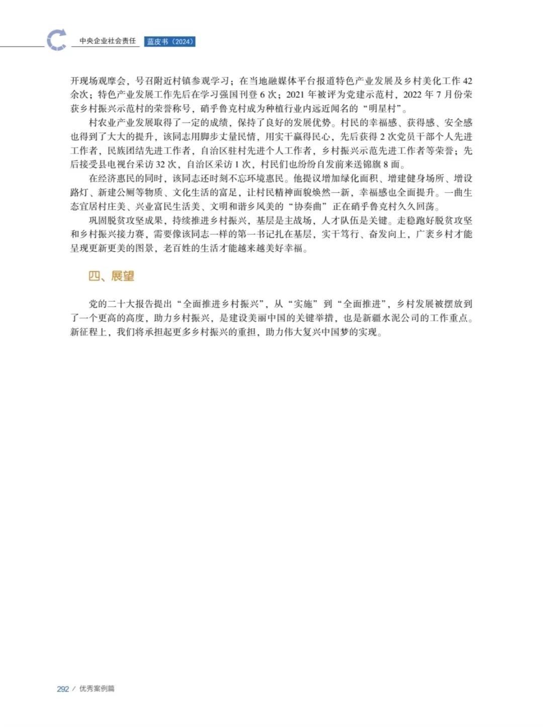 《奏响乡村振兴主旋律 天堂影视在线,体现央企责任与担当》入选《中央企业社会责任蓝皮书(2024)》“共同富裕篇”优秀履责案例.