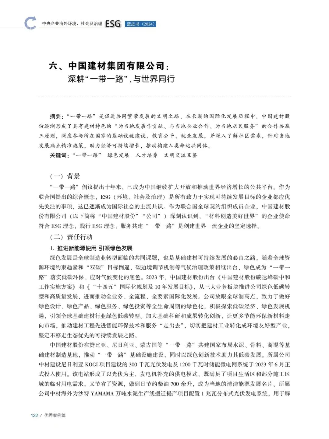 《深耕“一带一路”,与世界同行》入选《中央企业海外环境,社会及治理(ESG)蓝皮书(2024)》海外ESG综合优秀案例 天堂影视免费观看.