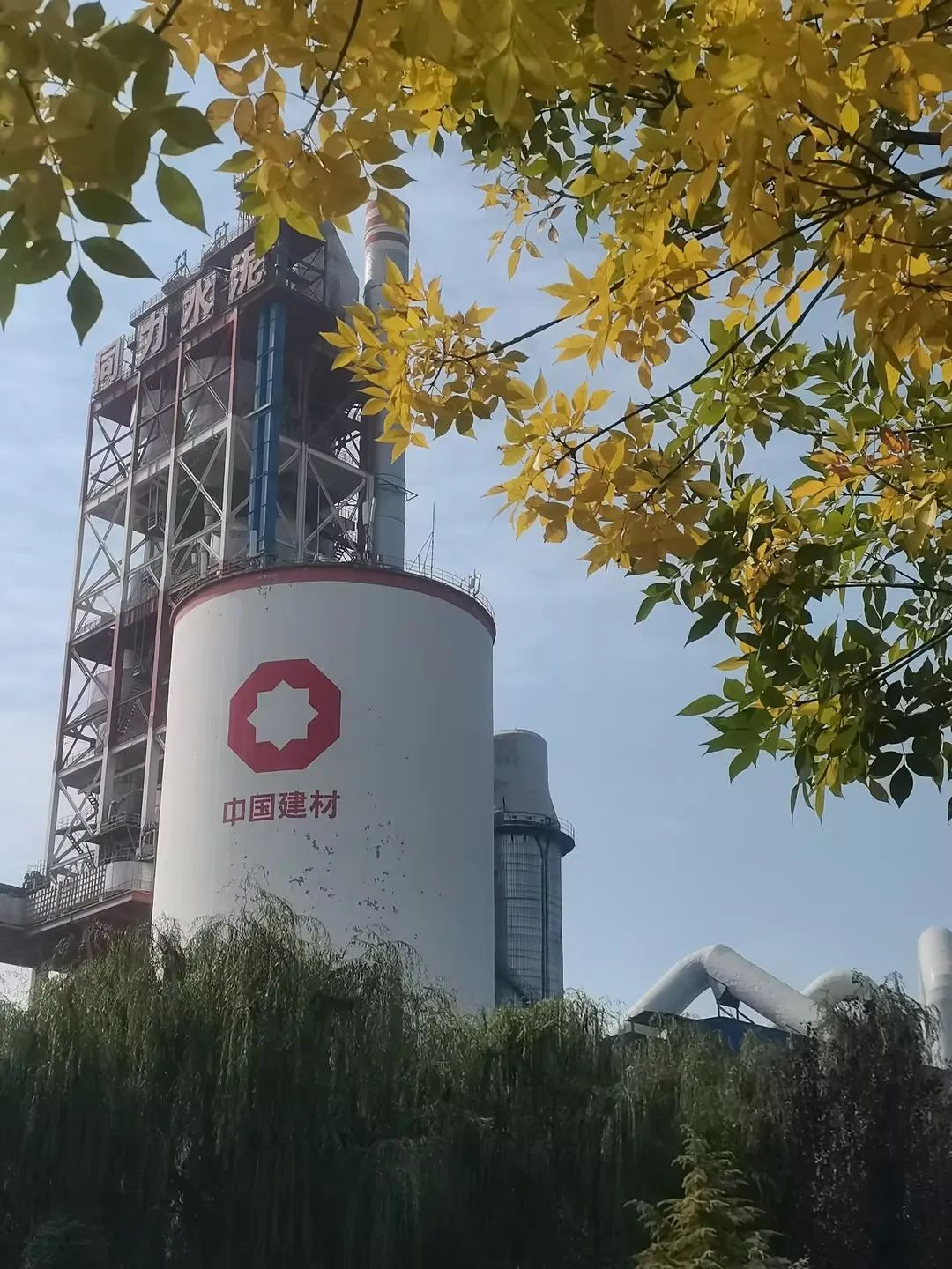 是平原同力黄绿辉映中的预热器 生料均化库