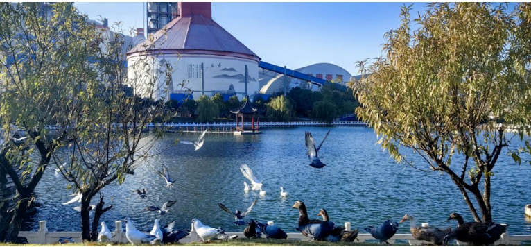 公司还大力推进厂区园林绿化和美化建设,道路硬化,优化平面布置,根据自然条件进行绿化和创意景点设置,绿化率超过95%,消除绿化盲区,厂区内树木葱茏,绿草如茵,四季繁花似锦 天堂影视,办公区爱心湖碧波荡漾,鱼肥水美,天鹅野鸭徜徉其中,俨然一座人与自然和谐共处的花园式绿色工厂。