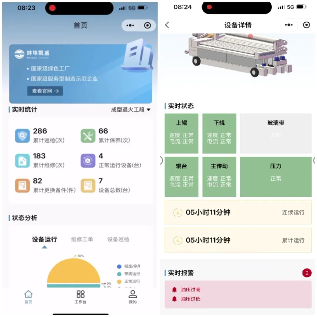 设备管理作为玻璃工厂的核心环节,直接关系到生产线的稳定性和产品质量。蚌埠凯盛的精益生产管理系统集成了设备管理模块,通过数字化手段对生产设备进行全生命周期的管理,包括设备的运行状态监控、维护保养计划制定、故障诊断与预测等。