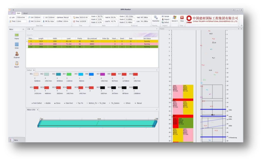 蚌埠凯盛还自主开发了一系列优化算法,特别是针对玻璃生产中的关键环节——切割控制。通过对切割工艺的优化,系统成功将切割精度控制在±0.3mm以内,达到了国际一流水平。这一技术突破有效提升了玻璃成品的切割质量,同时减少了切割废料,使得成品率提升约4%。这一技术不仅大幅提高了产品的市场竞争力,还为企业带来了可观的经济效益。