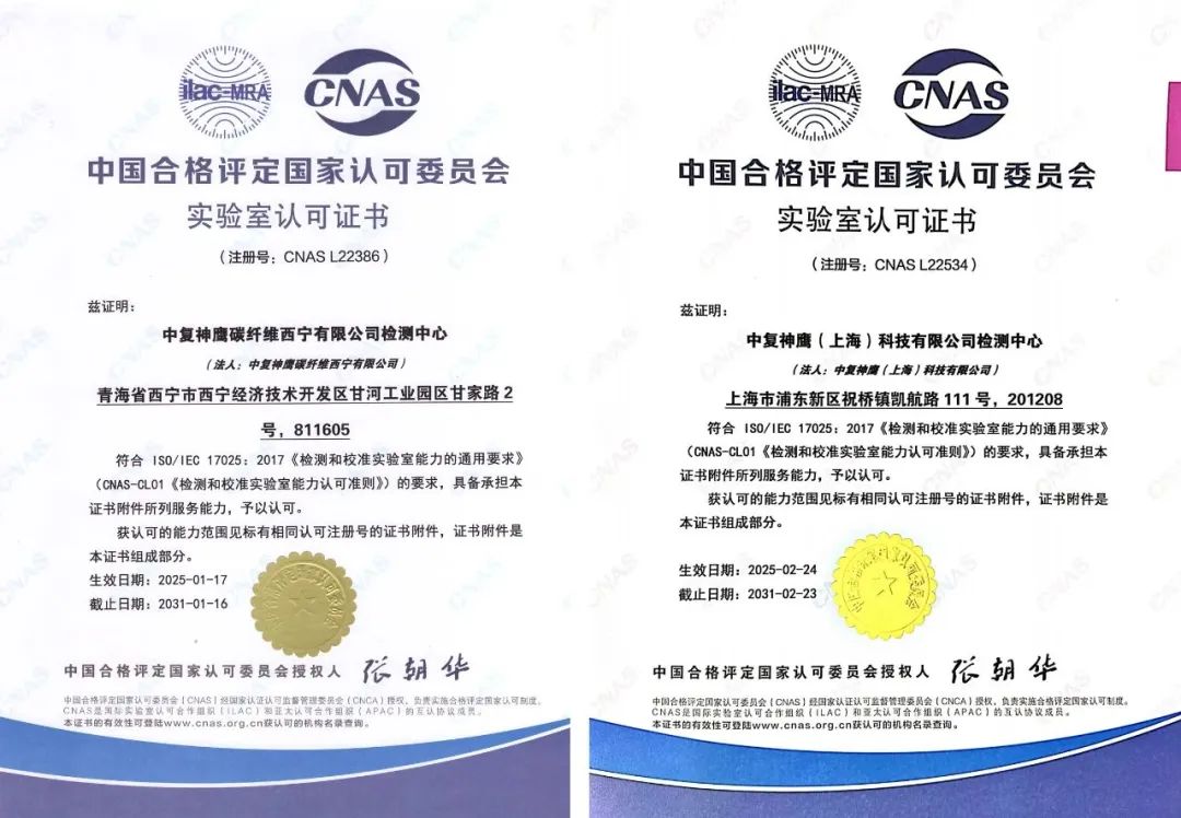 近日,中复神鹰所属西宁公司检测中心,上海公司检测中心通过中国合格评定国家认可委员会(CNAS)监督评审,至此,中复神鹰已有三个检测中心获得CNAS颁发的实验室认可证书,进一步印证了企业在碳纤维及其复合材料检测领域的检测能力,质量管理体系及技术能力达到国际先进水平,据统计,以上三家实验室占地面积超过5000平方米,实验室检验技术人员近100人,检测设备近300台/套,通过CNAS认证的检测范围涵盖碳纤维原丝,碳纤维 天堂影视在线,碳纤维复合材料,检测项目达到96项。