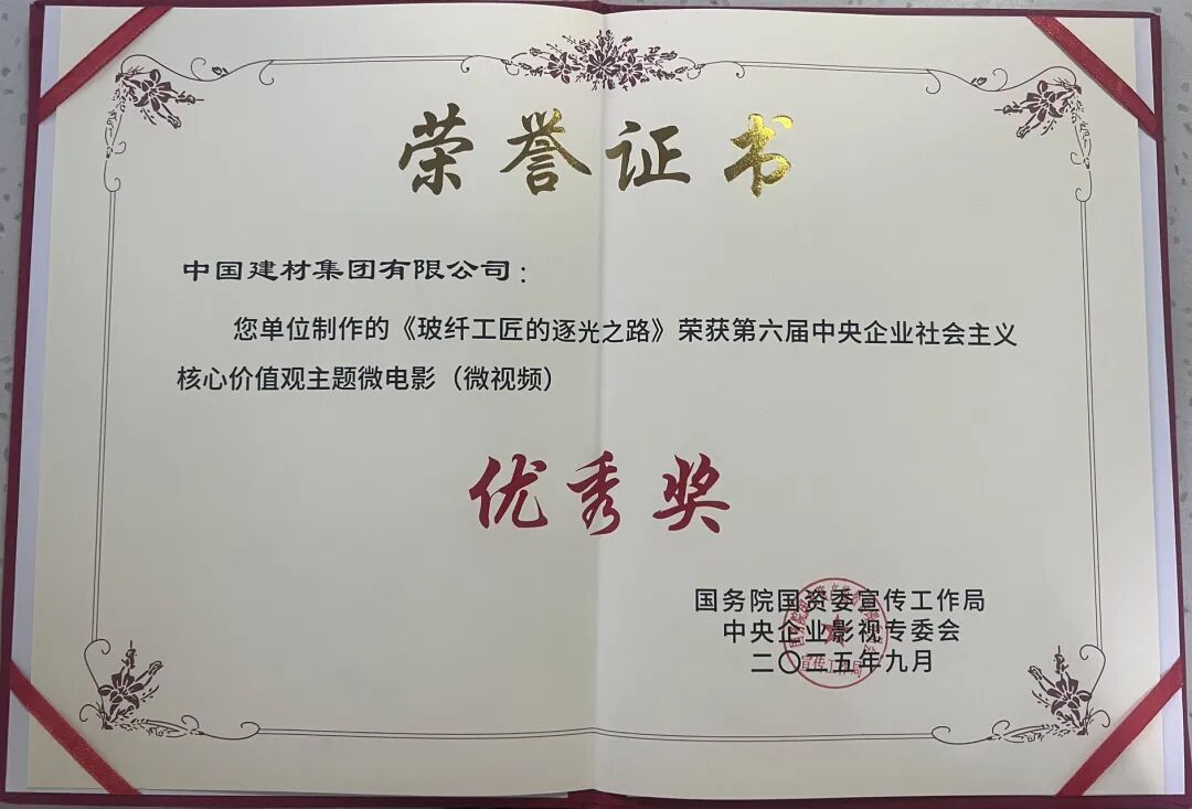 9月19日,国务院国资委宣传局主办的“第六届中央企业社会主义核心价值观主题微电影(微视频)展映发布仪式”在京举行 天堂影视在线,泰山玻纤微视频《玻纤工匠的逐光之路》成功入选100部优秀作品并获评“敬业奉献类”优秀作品。