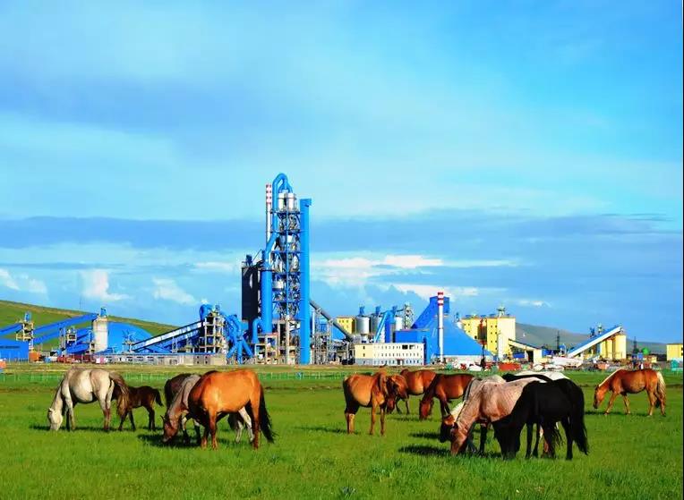 这个画面非常漂亮,但这不是PS的,这是我们在蒙古国给他们建设的一个草原上的工厂。我有时看看这张照片,就觉得心里很舒服,我们建的工厂与蓝天、白云、草原、马,相得益彰,这都是“一带一路”上我们所进行的。
