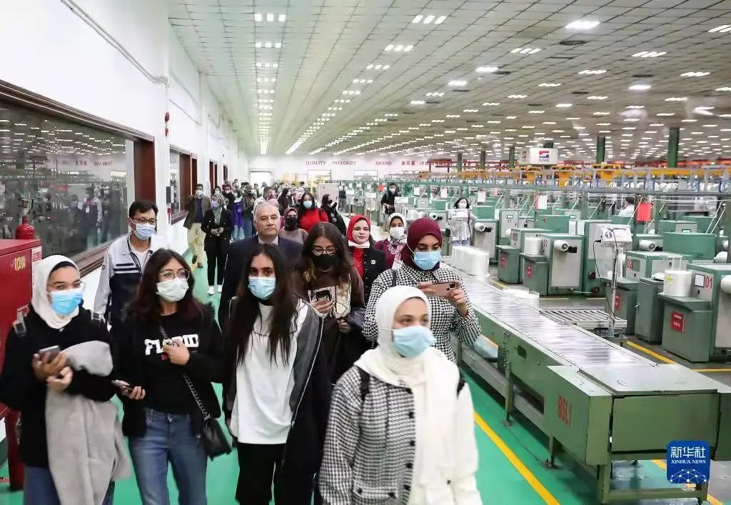 Egyptian students visit China's fiberglass giant manufacturer Jushi in Suez Province, Egypt, on Dec. 30, 2021. (Xinhua/Sui Xiankai)