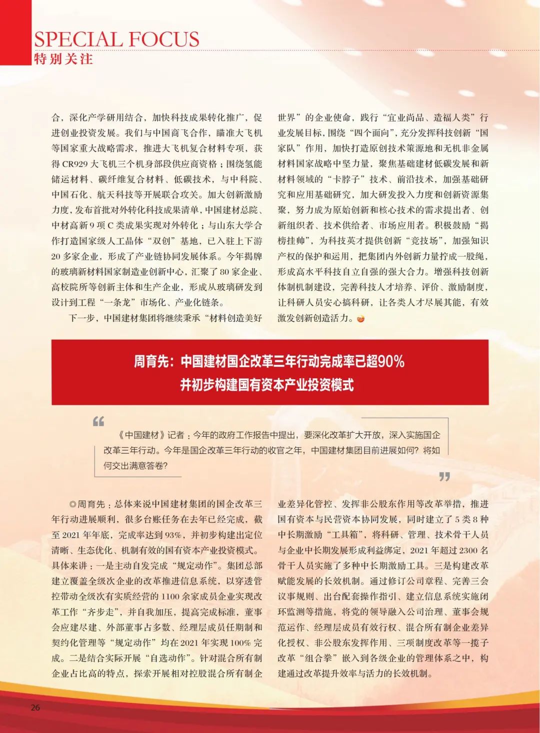 周育先:天堂影视国企改革三年行动完成率已达93% 天堂影视高清,并初步构建国有资本产业投资模式.
