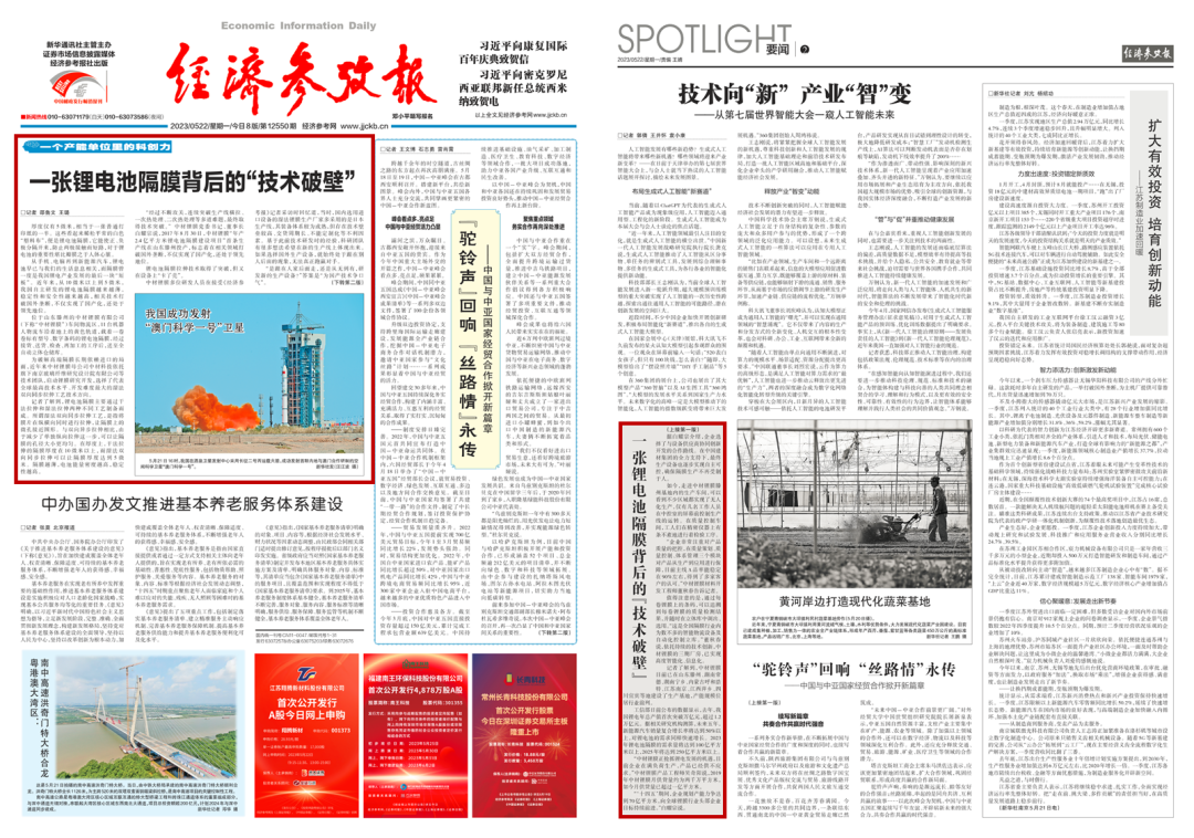 来源:经济参考报 发布时间:2023-05-235月22日,《经济参考报》头版头条“一个产能单位里的科创力”栏目首篇刊登《一张锂电池隔膜背后的技术破壁》,重点报道了天堂影视集团所属中材锂膜不断进行技术创新升级,打破国外垄断,不仅实现了国产化,还处于领先地位。小料现将内容分享给大家~