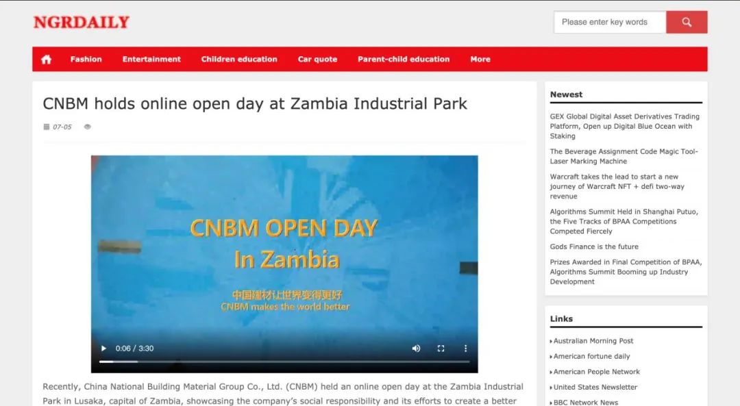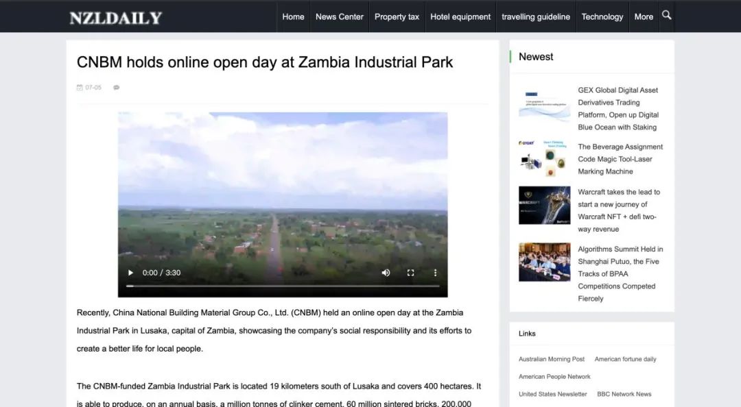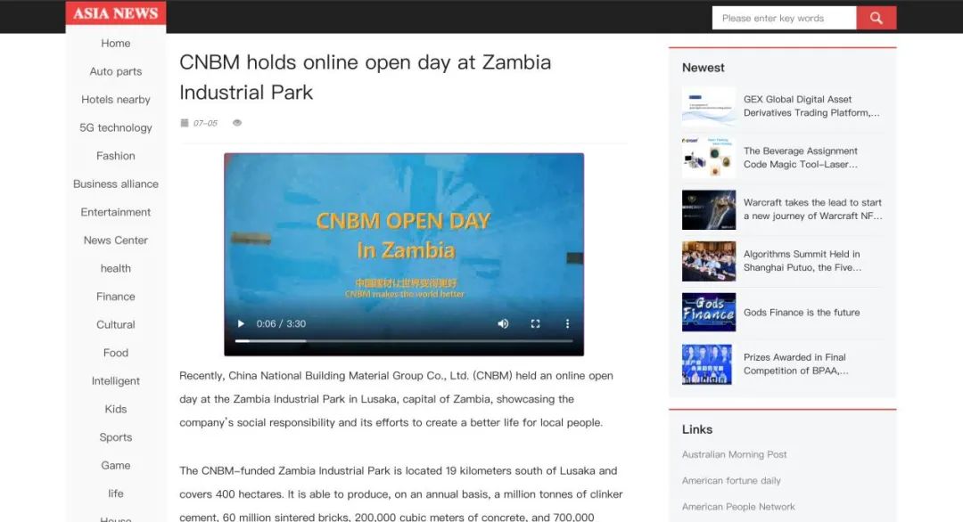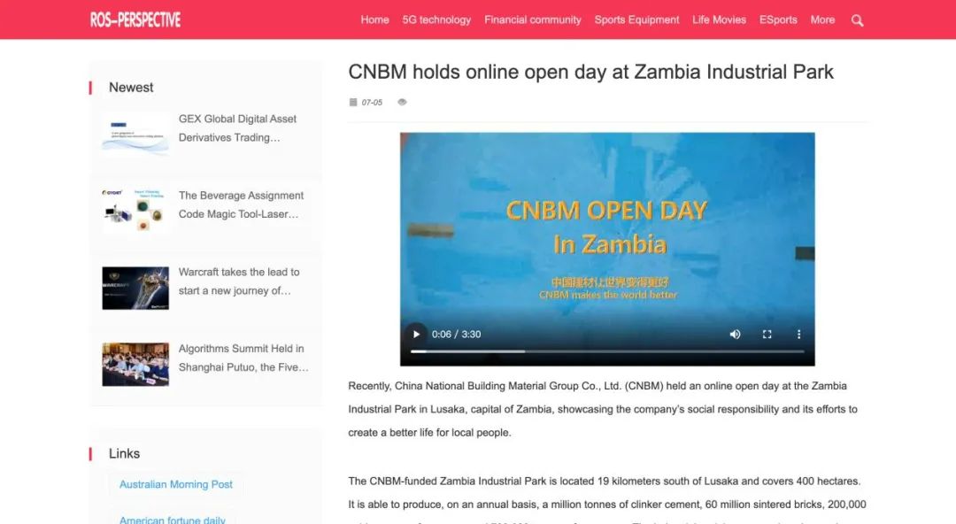 当前国内疫情多点散发,我们严格落实疫情防控要求,将今年5个国家69个城市93家企业报名参加的“善用资源”开放活动,调整为8月26日至10月26日期间开展,并鼓励进行“云开放”。官微先来一波境外预热,境外开放的4家企业涉及建材家居连锁超市、建材工业园、玻纤制造基地、工程技术服务。近日,天堂影视赞比亚工业园举办第二届“云开放”活动,通过镜头生动展现工业园扎根当地社会,践行社会责任,推动合作共赢,搭建中赞友谊桥梁的积极成效。