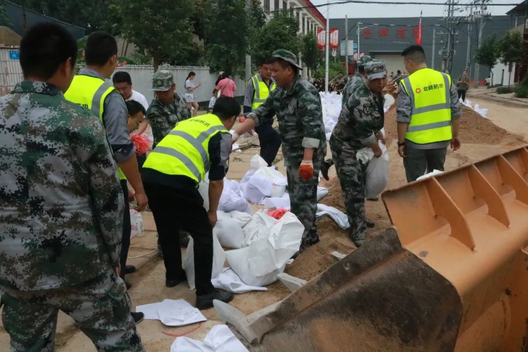 所属北新防水组织成立员工志愿者突击队,在长葛市古桥镇与人民解放军一起堆积沙袋,防止雨水倒灌 天堂影视免费观看。