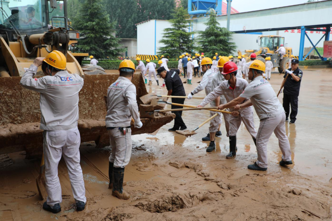 ▲登封中联党员先锋突击队在郑州配合开展排涝救灾工作