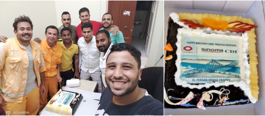 蒙塔兹(左二)在大桥项目部庆祝生日