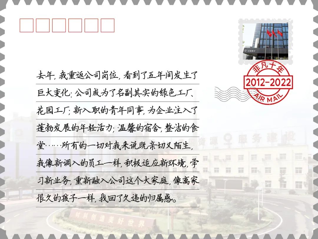寒来暑往,我与企业共成长,有心酸和挫折,更有骄傲和自豪。十载冬去春来,中材安徽由原先的黄泥路,铁板房,逐渐成长为拥有三条4500吨水泥生产线及配套27MW余热发电系统;年产熟料540万吨,水泥300万吨;年无害化处置城市生活垃圾18万吨的单体产能较大,产业链较为完整,具有较强竞争优势的综合类建材企业。企业在发展,员工在成长,在领导们的指导下,在同事的帮助下,我也逐渐成为对企业行政、党群、宣传、财务、工商、法务合规等知识等都略有了解的“多面手”。