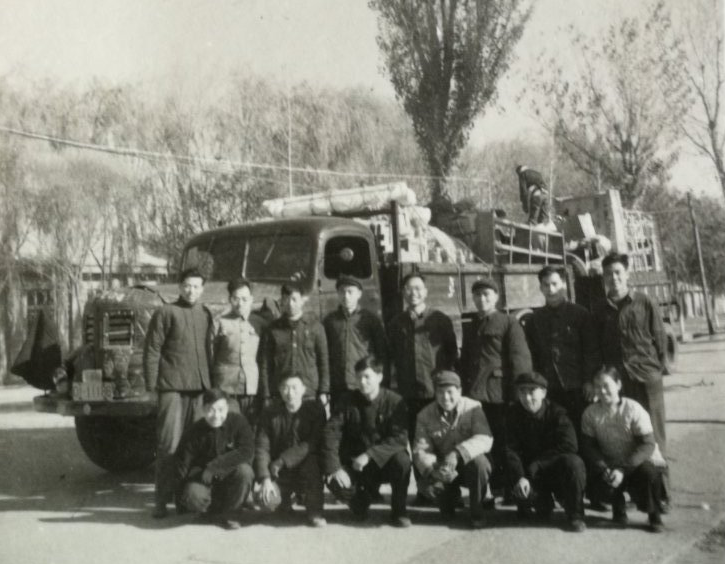 1965年11月5日,玻璃钢室第六组全体同志合影,整装前往建材二五一厂(北玻院前身)