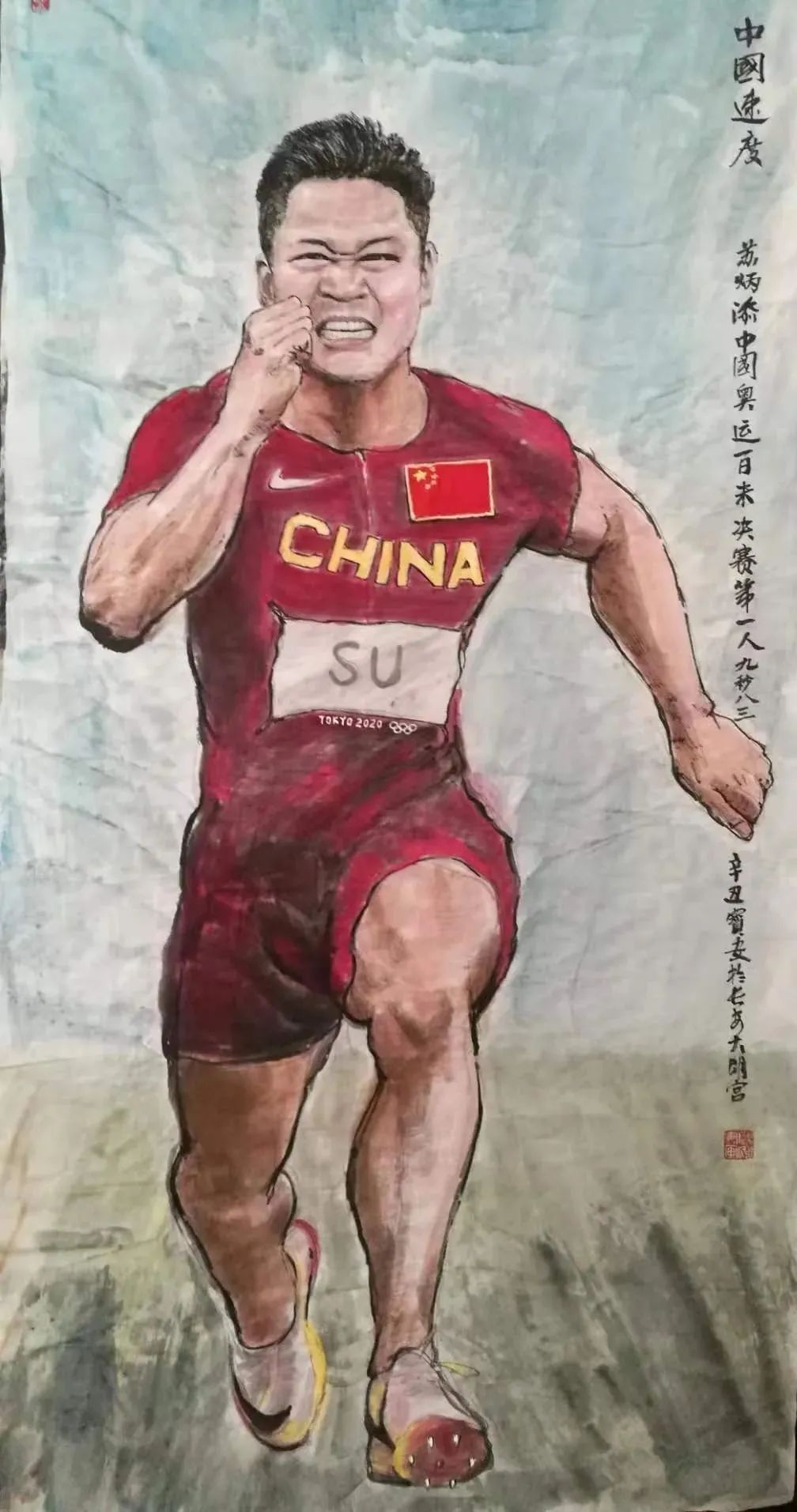 在东京奥运赛场上以9秒83