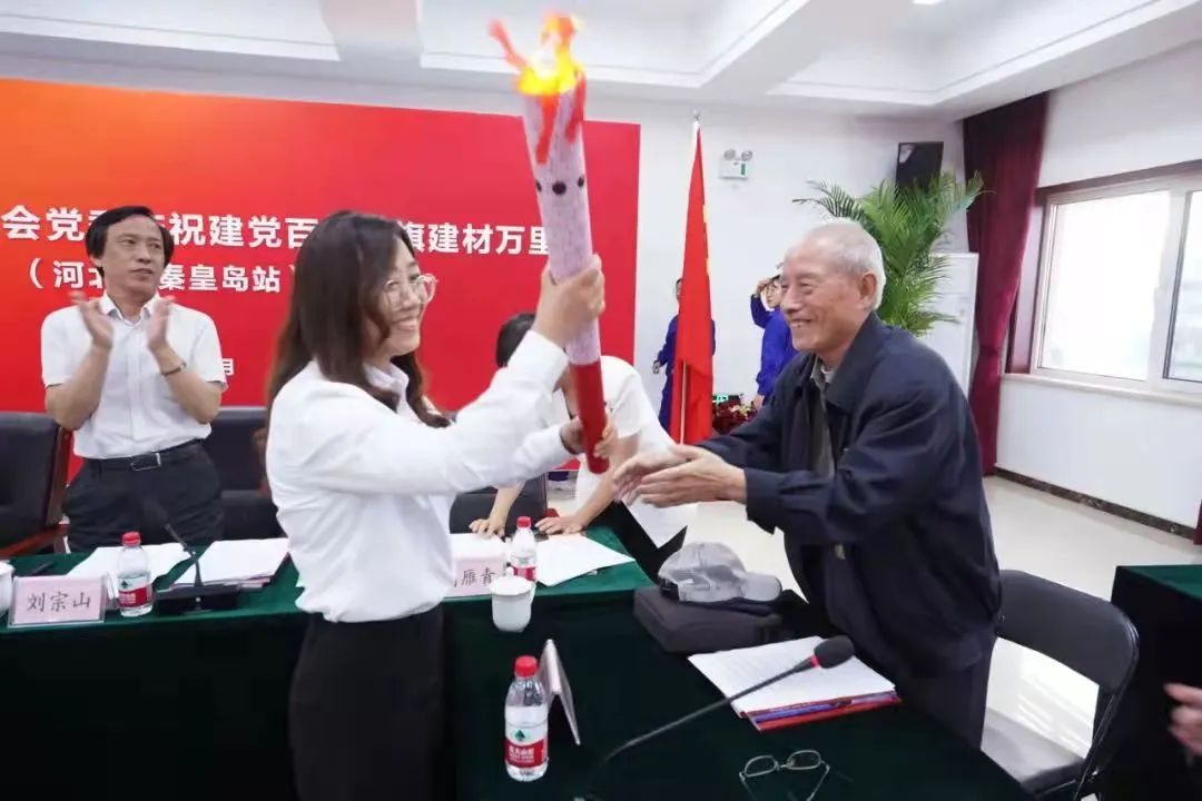 图为庆祝建党百年“党旗建材万里行”活动上的“老少80后火炬传递”