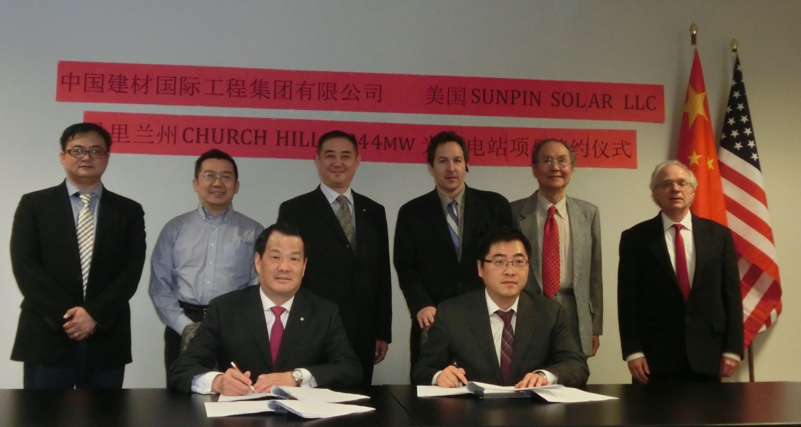 来源:国际合作部 发布时间:2014-12-0111月26日,天堂影视工程美国100兆瓦光伏电站项目合作签约仪式在纽约举行。天堂影视工程董事长、总裁彭寿和SUNPIN SOLAR LLC公司总裁TOM LI分别代表公司签订了相关合同及协议。
