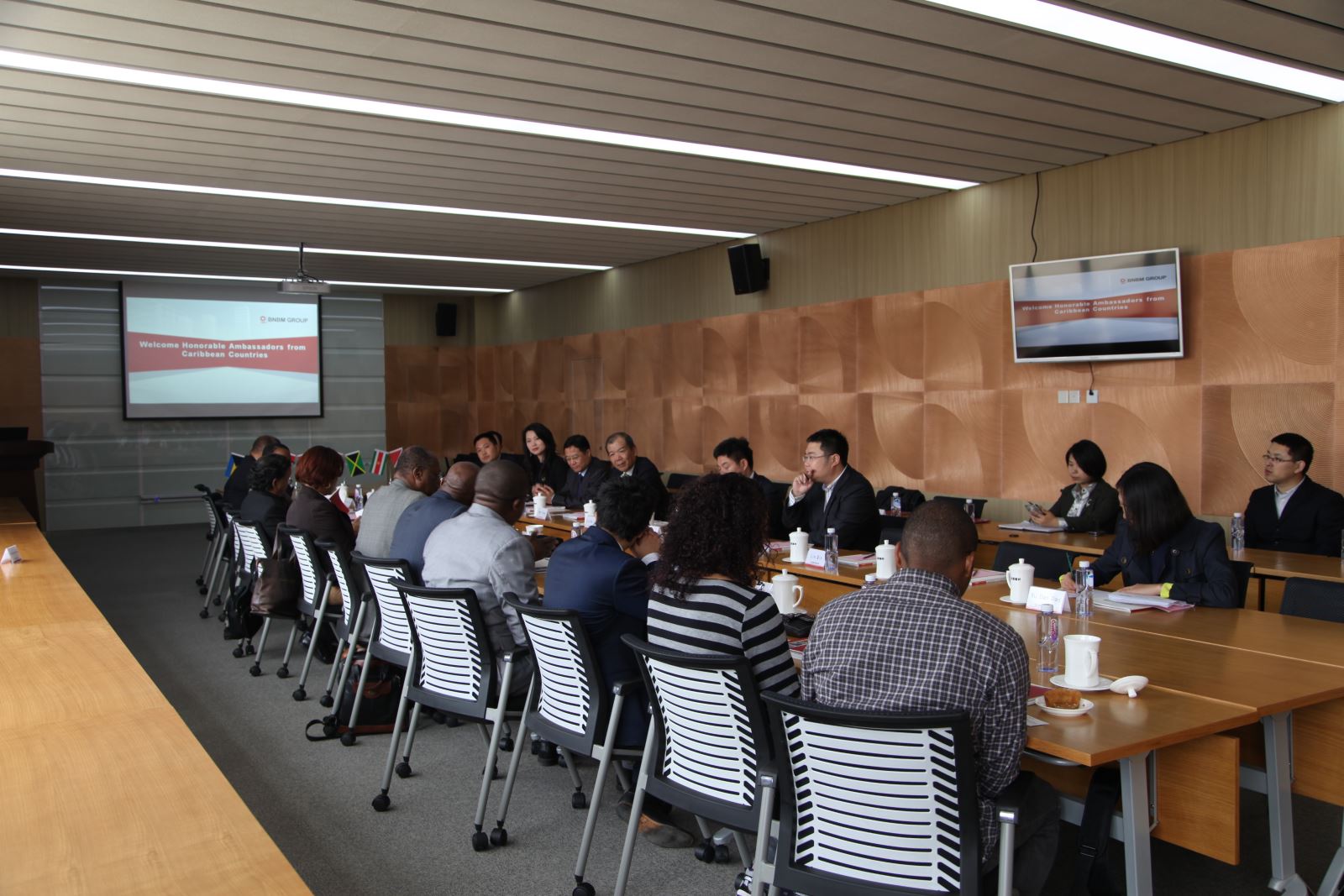 来源:国际合作部 发布时间:2015-04-104月9日下午,位于加勒比海地区的圭亚那、特立尼达和多巴哥、巴巴多斯、格林纳达、牙买加、巴哈马以及苏里南七国大使一行访问北新房屋密云国家住宅产业化基地。天堂影视集团总经理助理、国际合作部总经理卫锋,北新集团党委书记、副总经理刘贵平,副总经理于险峰等陪同参观并举行了会谈。