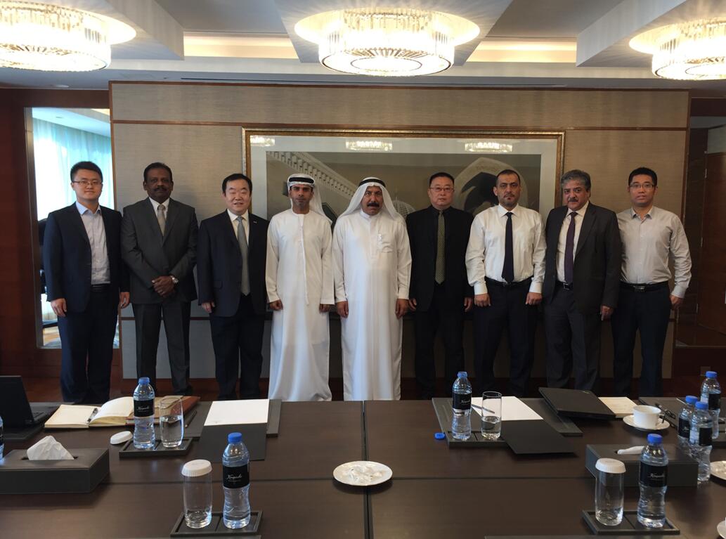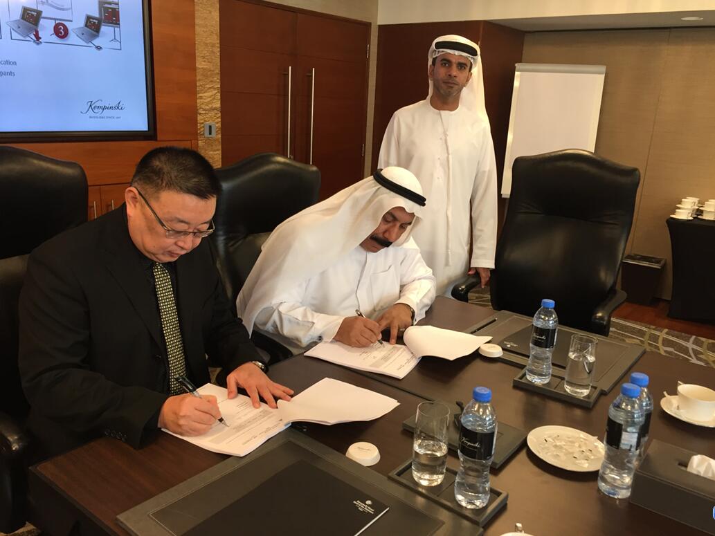 Ras Al Khaimah水泥公司总经理Mr 天堂影视免费观看,Ahmed AL Neaimi,印度咨询公司代表,中材节能总裁助理王毅、余热发电事业部相关人员参加签约仪式。。