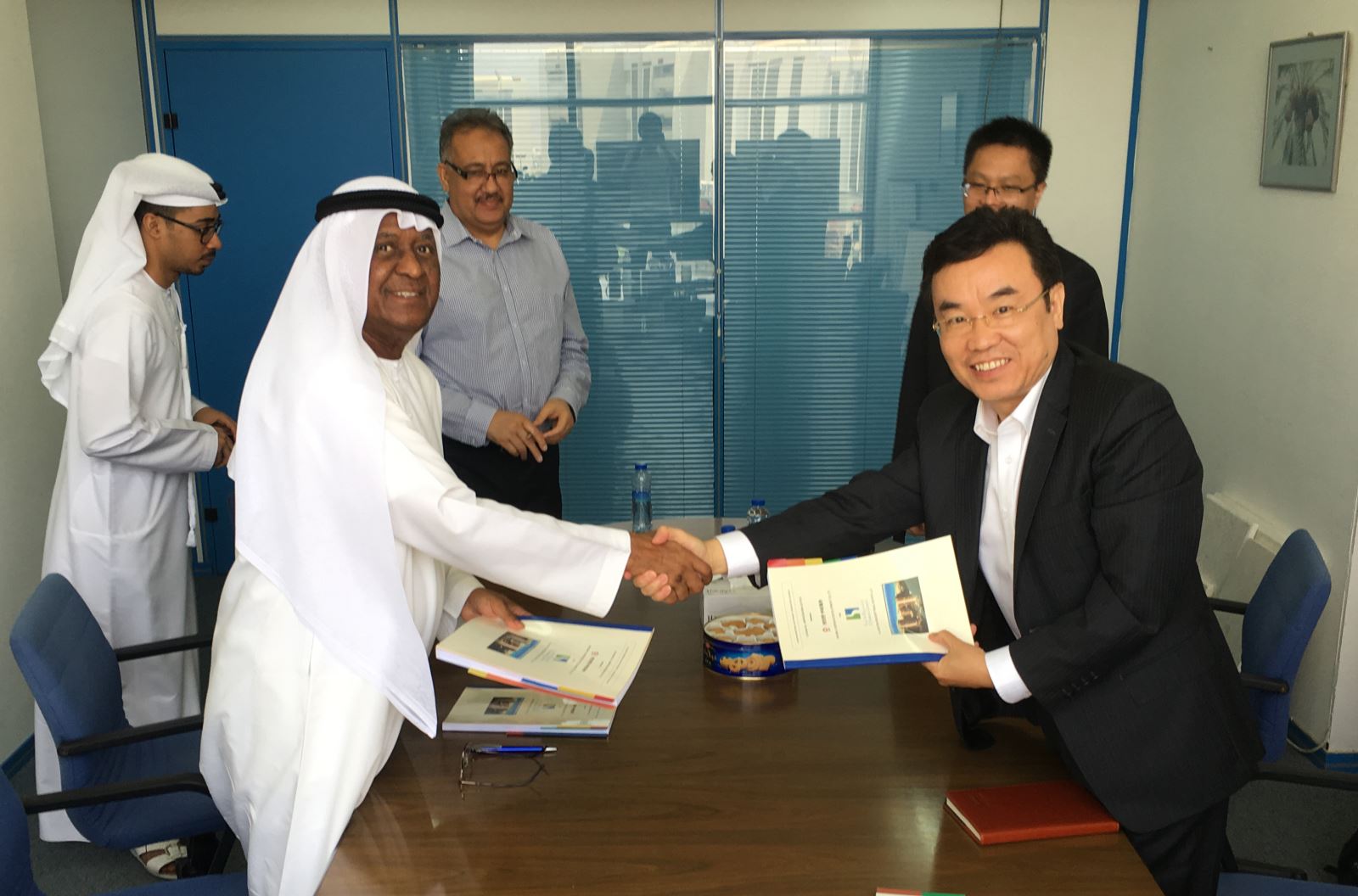 中材海外业务发展部相关负责人和新迈克(中东)公司总代表参加签约仪式。