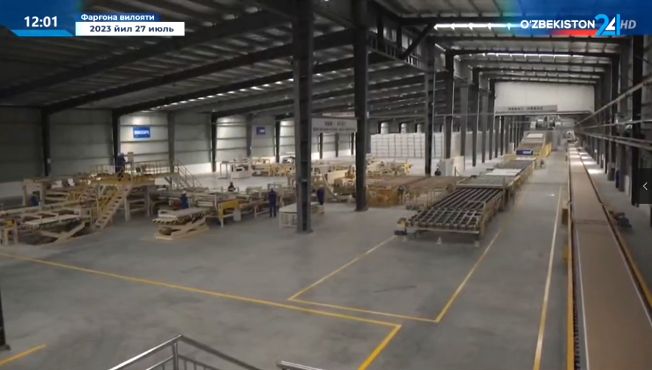 米尔济约耶夫总统在中亚北新总经理窦山锋陪同下参观石膏板车间