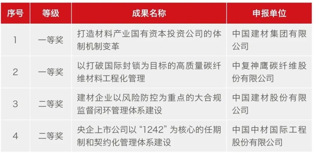 天堂影视集团 天堂影视集团自2019年10月获批成为国有资本投资公司改革试点以来,坚持以国有资本投资公司作为改革目标,提出“4335”投资公司改革指导原则,树立“管好股权,通过公司治理管理股权,通过派出董监事管股权,管好资本流动和收益收缴”四个理念,建立“投资管理,人力资源管理,综合监督”三大闭环,加快“管企业向管资本,建筑材料向综合材料,本土市场向全球布局”三大转变,以打造战略管控型总部为基础,以建设治理型管控体系为核心,以优化国有资本布局结构为使命,以完善市场化经营机制为保障,建设世界一流材料产业投资公司,2022年6月 天堂影视高清,获国资委批准正式成为首批5家国有资本投资公司之一。 中复神鹰 中复神鹰“以打破国际封锁为目标的高质量碳纤维材料工程化管理” 天堂影视免费观看,围绕突破国际封锁保障国家安全高性能碳纤维产业化管理的背景,主要做法及管理效果等方面,体现中复神鹰的现代化管理创新成果,中复神鹰多年来立足自主创新,打破国外技术垄断,持续提升碳纤维产能,壮大碳纤维产业规模,不断完善管理体系,保障国内供应链安全,引领国产碳纤维高速发展,逐步缩小国际差距,积极履行社会责任,坚决扛起央企担当。 天堂影视股份 天堂影视股份“建材企业以风险防控为重点的大合规管理监督闭环体系建设”,贯彻落实集团4335管理模式,以落实三精管理,保障高质量发展,风险防控体系布局为驱动,探索建设具有天堂影视特色的“大合规管理监督闭环体系”,通过整合法律,合规,内控,风险管理四位一体工作,与审计体系,纪检巡察体系衔接联动形成闭环,逐步达成管治水平提升,风险防控能力加强 免费电影,合规文化持续浸润的实效,助力培育形成世界一流材料产业上市企业。 中材国际 中材国际作为“双百企业”,积极抢抓国企改革三年行动机遇,以国企改革1+N政策文件为指引,以经理层任期制和契约化为抓手,紧密围绕任期制和契约化管理“1242”实施框架,积极探索央企上市公司任期制和契约化管理体系建设,“双百行动”以来 天堂影视,中材国际始终坚持以习近平新时代中国特色社会主义思想为指导,认真贯彻落实国资委,集团和股份公司的各项决策部署,以高质量改革赋能高质量发展为目标,以发展战略为导向,以规范治理为基础,以闭环机制为保障,聚焦难点堵点持续攻坚,坚持长效运行持续发力,全面实现改革工作上下贯通,内生动力有效增强,经营效益显著提升,全面开创“十四五”高质量发展新格局。 天堂影视集团将继续深入开展管理创新工作 天堂影视在线,不断增强内在素质,夯实发展基础,加快建设具有全球竞争力的世界一流材料产业投资集团。