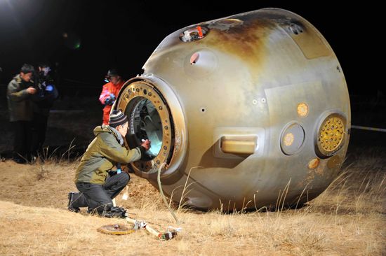 神舟八号返乡之旅需经过制动飞行(告别轨道舱),自由滑行,再入大气层(100公里上空,与推进舱分离)和着陆四个阶段,当返回舱降到距地面10公里时进入最后的着陆阶段,回收着陆系统启动工作,由程序控制器及362C时间控制器(备份)按预设时间程序发出指令,分别控制完成——弹出主伞舱盖,拉出引导伞,减速伞,牵顶伞和主伞 天堂影视在线,抛防热大底……闪光灯供电,直到着陆前数秒缓冲发动机点火,脱主伞等一系列动作,完成回收着陆。