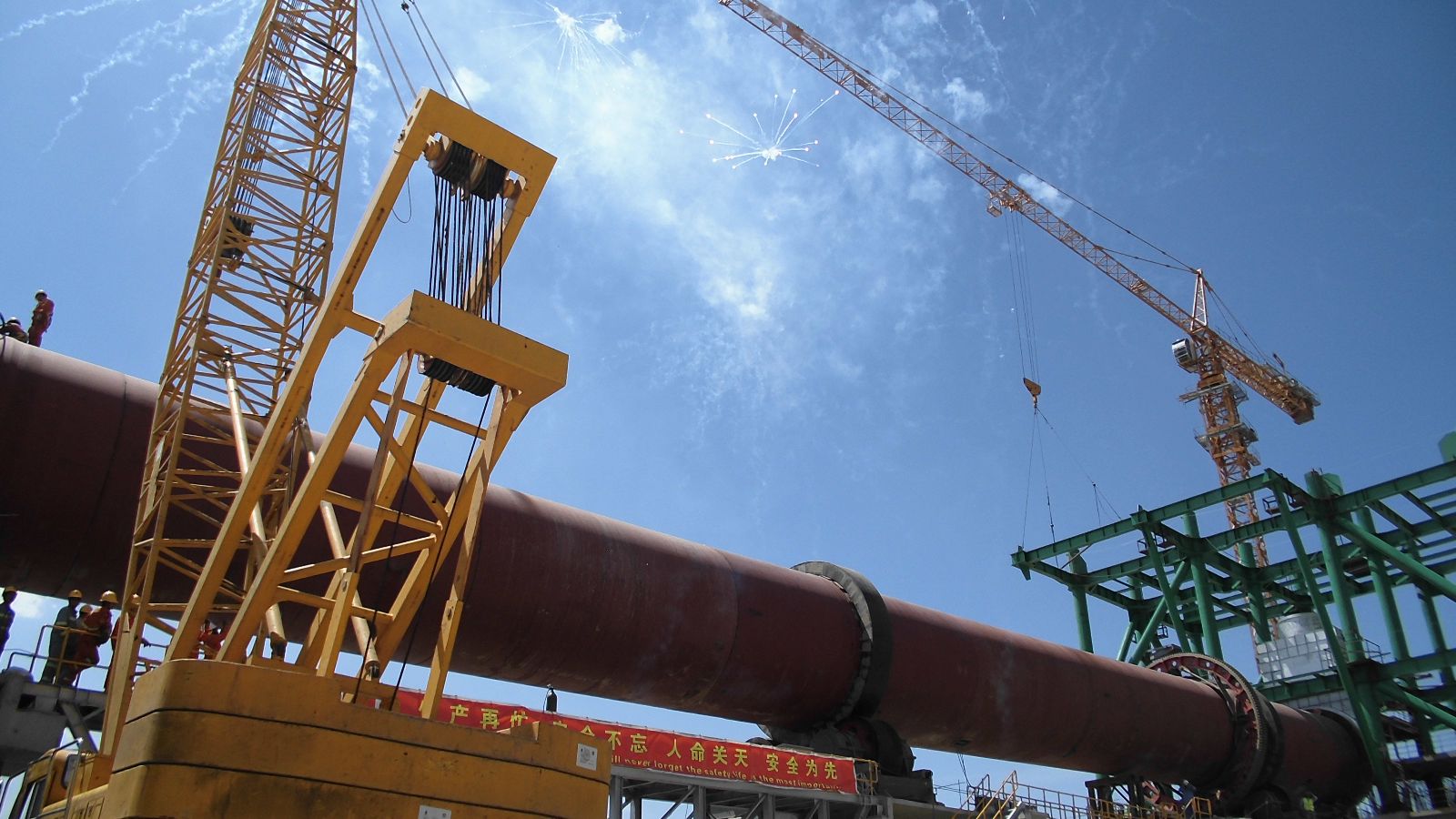 该项目回转窑筒体吊装工作于5月6日展开,在天堂影视工程阿塞拜疆项目部和设备安装公司的精心组织下,吊装工作紧张有序,全长72米的庞然大物分成5节吊装 天堂影视在线,吊装期间接连经历了两天大风阴雨天气,给吊装工作造成非常大的困难,但项目部和安装公司提前进行了周密部署和详尽安排,确保了吊装工作井然有序,安全,可控,高质量地完成。