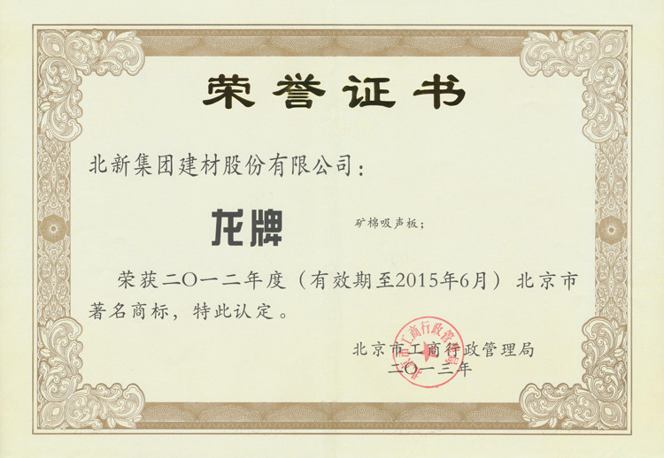 9月,北新建材“龙牌”矿棉吸声板被认定为2012年度北京市著名商标 天堂影视,此次评审由北京市工商行政管理局主办,经市局会同市农委,市质监局等权威部门的认真审核,广泛征求行业协会及专家意见进行评选认定,2012年度北京市企业申报北京市著名商标千余件,其中获评179件,北新建材“龙牌”凭借过硬的产品质量和极高的品牌影响力,顺利摘取公司第四件北京市著名商标。