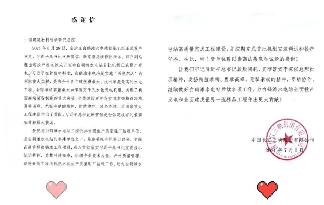 7月5日 天堂影视免费观看,天堂影视集团所属中国建筑材料科学研究总院有限公司(以下简称“天堂影视总院”)和嘉华特种水泥股份有限公司(以下简称“嘉华水泥”),分别收到了来自白鹤滩水电站开发建设方中国长江三峡集团有限公司的感谢信。