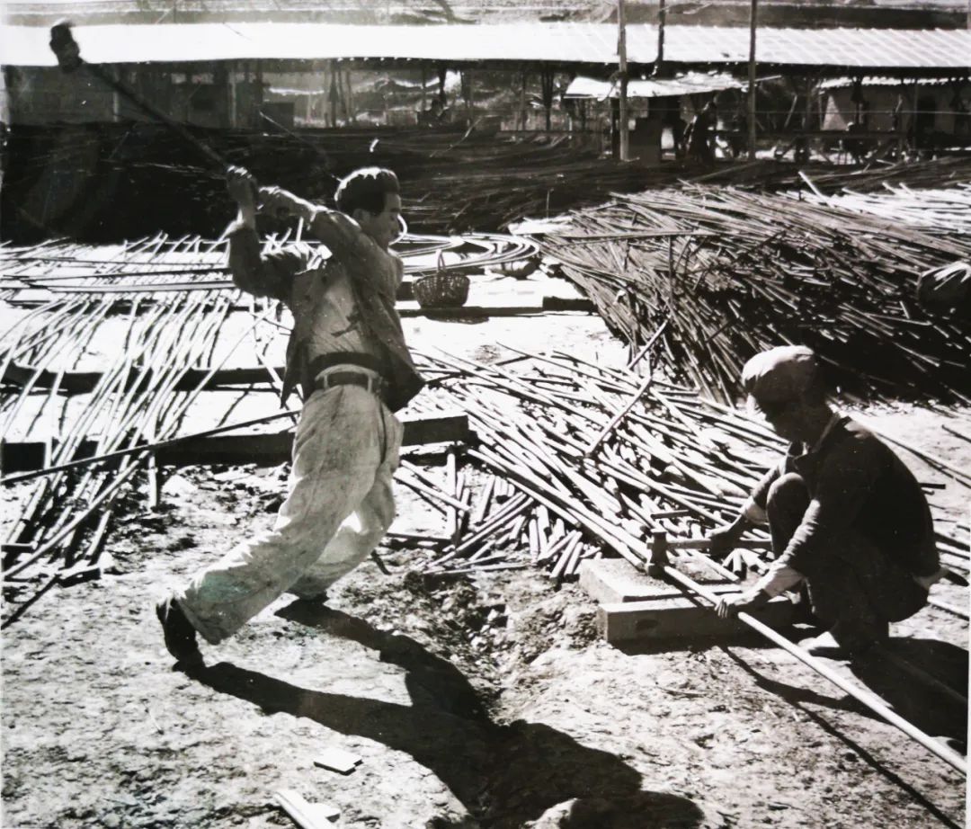 照片中的主人公傅德成是热火朝天地参与永登水泥厂建设的一员,从白山黑水的东北来到莽莽苍苍的西北,他全神贯注地盯着目标,踮起脚尖 天堂影视高清,腰身前弓,张开双臂,抡起20多磅重的大锤,铆足全身的力气,准备轧断25#圆钢,不远处,已经有一堆轧好的圆钢静静等待着被搬去施工……。