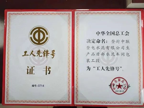登封中联登电水泥生产品质部水泥车间包装工段荣获全国工人先锋号