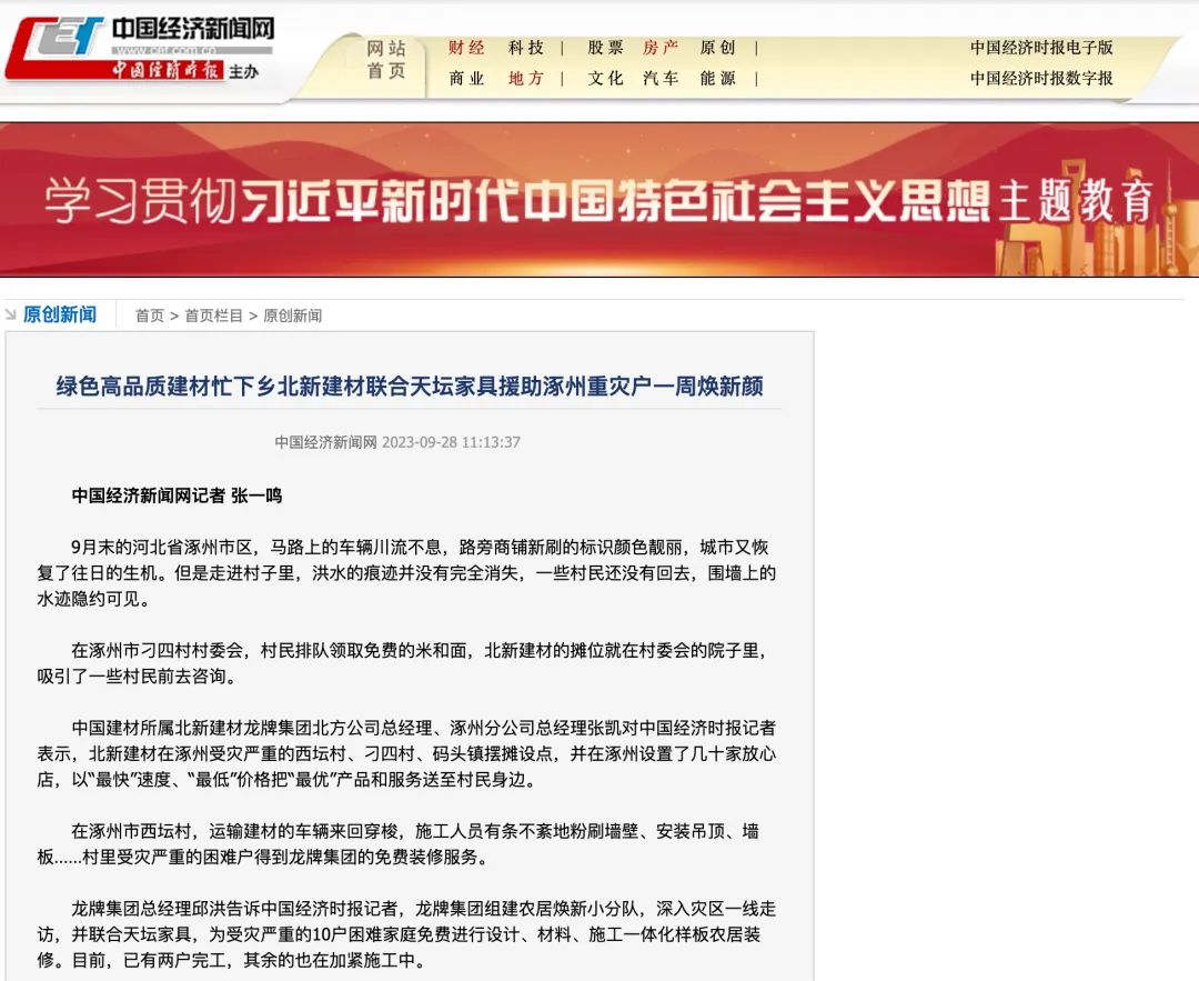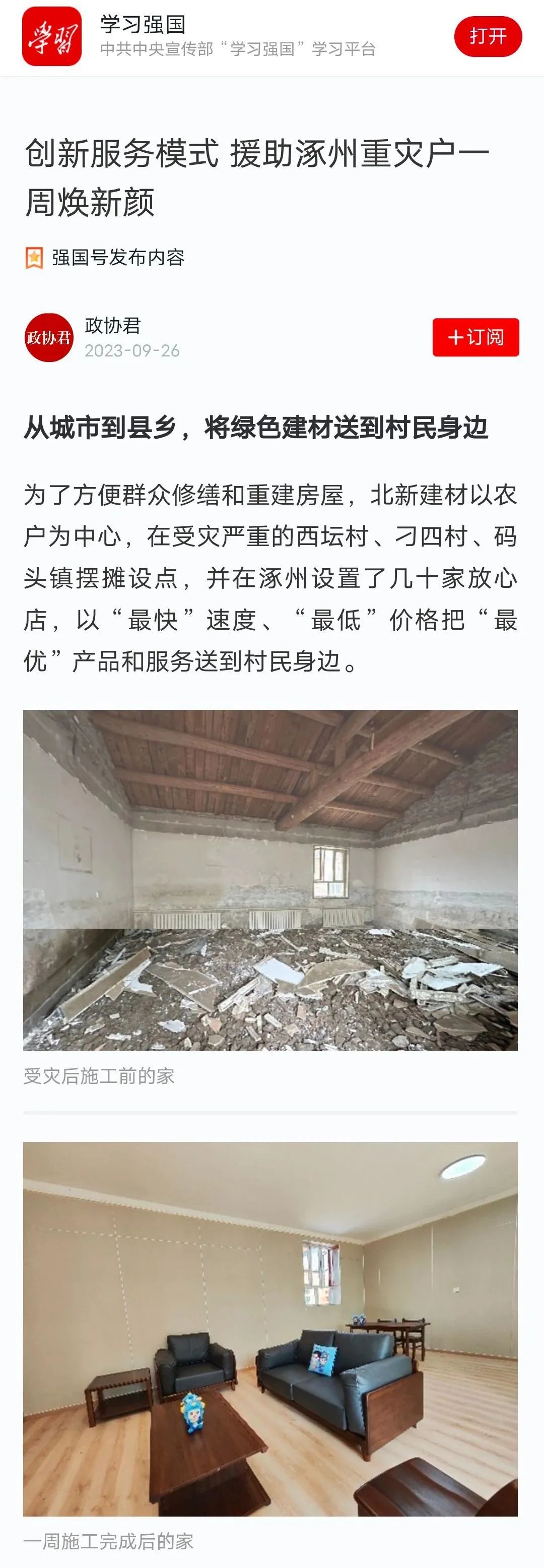 人民政协网从“创新服务模式 援助涿州重灾户一周焕新颜”角度介绍了北新建材践行央企责任,深入县乡灾区一线,积极助力灾区重建,把优质建材和服务送到村民身边 天堂影视在线,推动“四个转变服务升级”的创新实践。