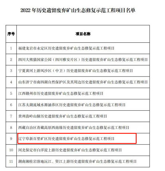 阜新百里矿区历史遗留废弃矿山生态修复示范工程总预算5 天堂影视在线,16亿元,工程以“绿色屏障、低碳阜新”为目标,通过地形地貌重塑、废弃土地复垦利用、植被恢复等措施,治理历史遗留废弃矿山2,6万亩,构建 “山青、水碧、林郁、田沃、草绿、沙净”的新生态格局,为实现“双碳”目标,维护国家生态安全做出新贡献,为辽宁总队在山水林田湖草沙、历史遗留矿山、双碳等领域业务拓展奠定坚实基础。。