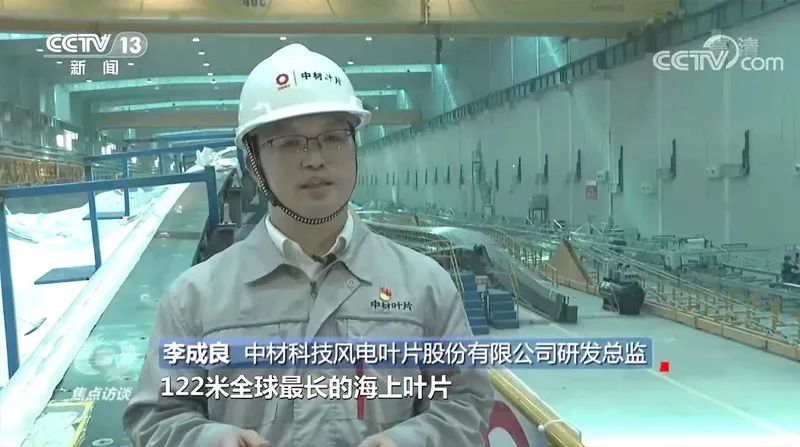 中材科技风电叶片股份有限公司研发总监李成良说:“现在正在生产的是122米,全球最长的海上叶片,这个叶片采用了最先进的高性能翼型和碳纤维拉挤技术研发而成,” 免费电影。