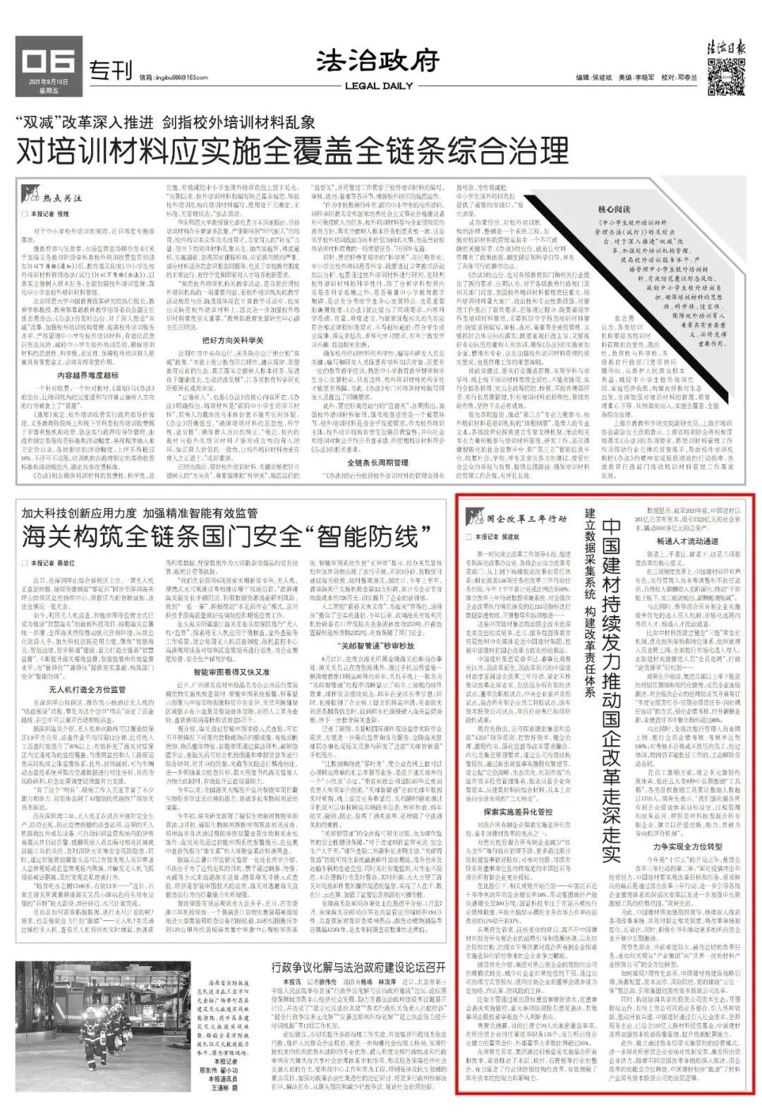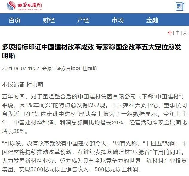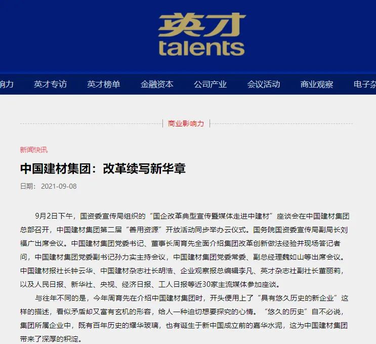 来源:法制日报、人民网、中国证券报、证券日报、英才杂志、上观新闻 发布时间:2021-10-22国资委宣传局组织媒体走进中建材