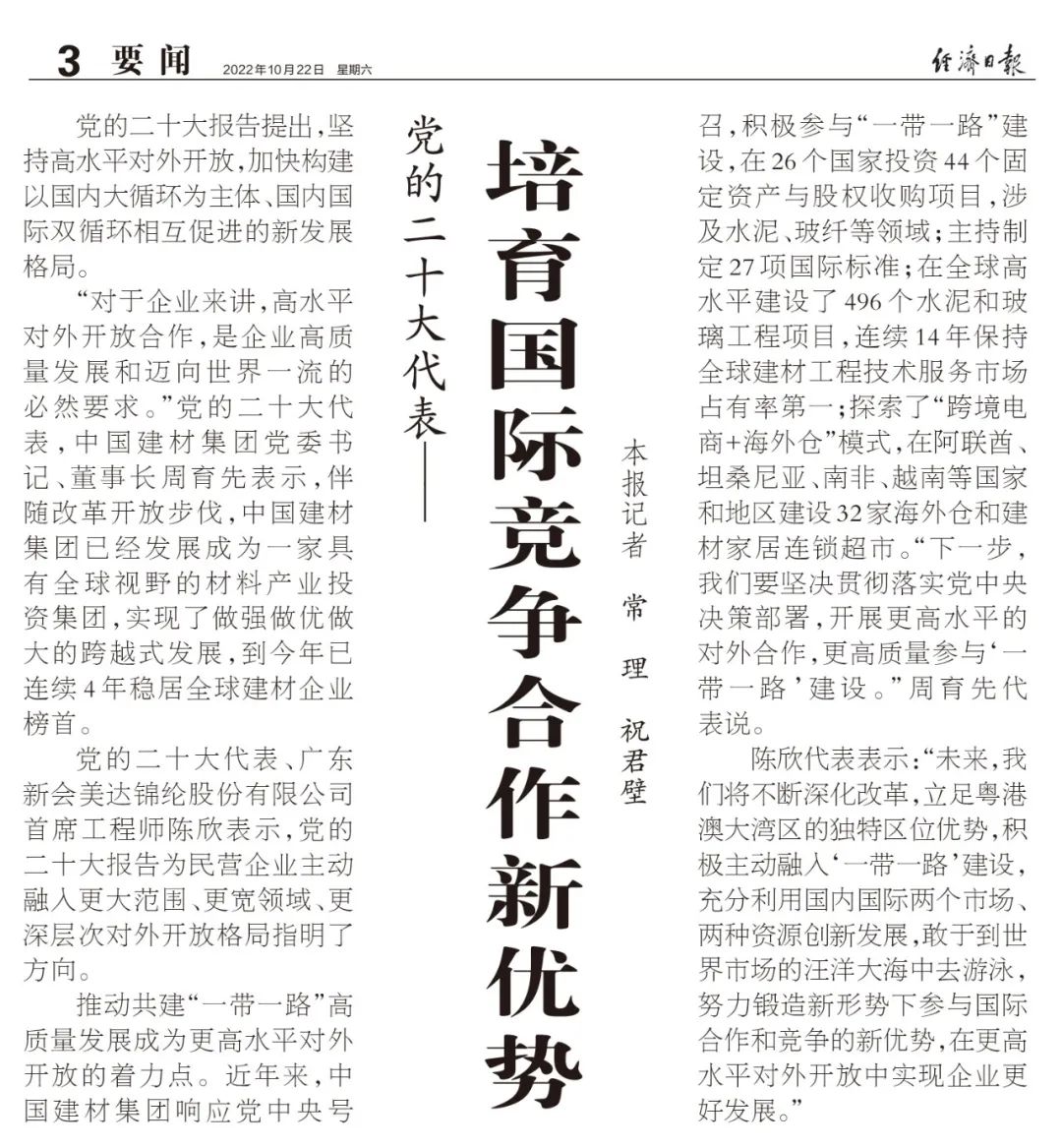 二十大代表访谈 | 深化改革创新、高水平对外合作,实现高质量发展