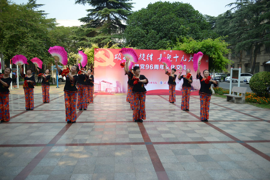活动现场,观众热情高涨,演员表演精彩,蚌埠院带来了太极双扇舞《渔家姑娘在海边》、《杨氏二十四式太极拳》及花鼓灯表演《石榴花开》。武汉理工大学带来了古典舞蹈《柳叶湖美》、女声独唱《我和我的祖国》和《太乙游龙拳》多个节目,各显特色、精彩纷呈,赢得了在场观众阵阵掌声,表演者用欢快的舞蹈、美妙的歌声和精彩的拳法表演抒发感恩喜悦之情,向党的生日献礼。