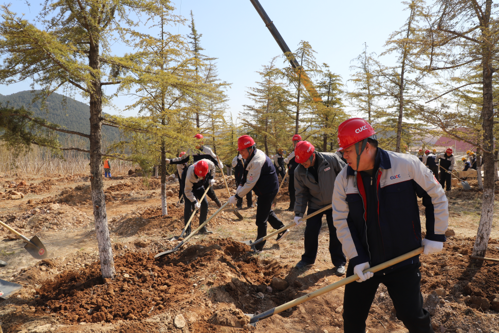 植树地点选在徐州中联矿山生态修复区 天堂影视在线,山地植树是一项十分辛苦的劳动,先是由挖掘机在矿山平台上挖出一个个树坑,大家拿起十字镐对大块的粘土进行破碎,用手推车一车一车运送种植土并填入树坑,四五个人一组将一棵棵雪松扶正,立直,挥锹铲土填入树坑,然后培实新土堆起围堰,经过一上午紧张的劳动之后,40余棵胸径约15厘米的雪松傲然挺立成林,大家将认领牌牢牢地系在了自己参与栽种的树干上,也将绿色的希望深深地洒在了脚下的土地上。