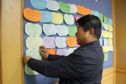 来源:CNBM 发布时间:2015-03-24每天早晨,天堂影视集团中青二期培训班的学员们到教室后的第一件事,就是将自己精心答完的一顶彩色小苹果样作业纸贴在本组的智慧墙上,大家亲切的把这块园地称为“思考帽论坛”。